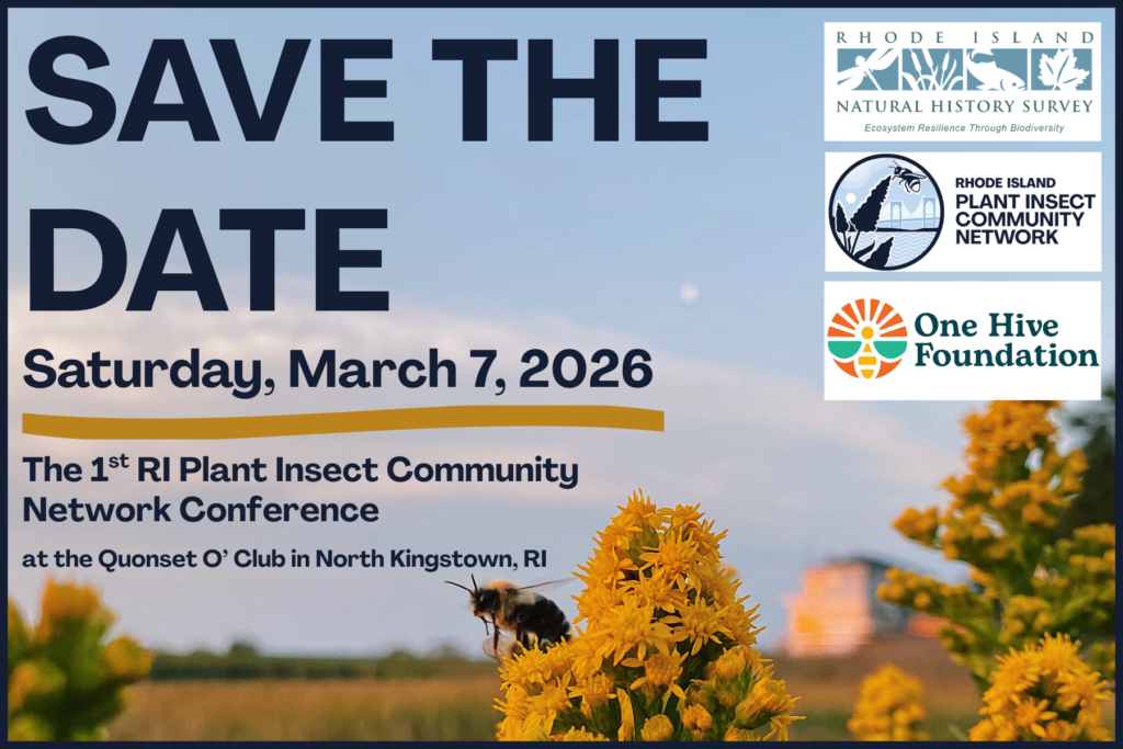 The Rhode Island Plant Insect Community Network (RIPICN) will be hosting a one-day conference on March 7, 2026 (10:00 a.m. – 7:00 p.m.) at the Quonset ‘O’ Club in North Kingstown, RI. This is a RI Natural History Survey Science Conference. The conference aims to highlight Rhode Island’s biodiversity, with a particular focus on insects, native plants, and organisms connected to the plant-insect network. We welcome work being done in RI and out-of-state research that is relevant to RI.
